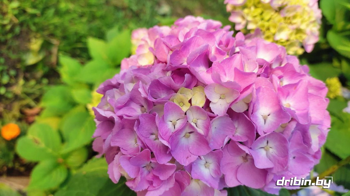 Настоящим украшением сада является пышная гортензия. Я ранее укрывала крупнолистную гортензию на зиму, чтобы сохранить прошлогодние побеги с цветочными почками, и она начинала цвести уже с июля. На зиму укладывала ветви на низкие (высотой 15 см) деревянные ящики и закрепляла. Укрывала несколькими слоями спанбонда, засыпала концы побегов и центр куста торфом или землей, а затем укрывала полиэтиленовой пленкой. По окончании весенних заморозков раскрывала их постепенно. Но последние два года я не укрывала кусты, и она зацвела лишь в августе, сентябре.