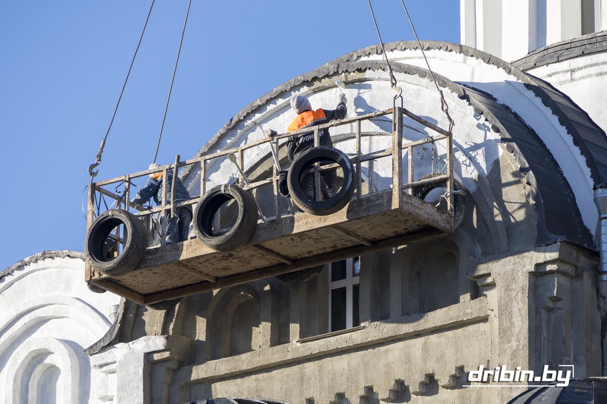 С ранней весны не прекращаются работы по благоустройству на территории храма в г.п. Дрибин. Как отмечает настоятель Спасо-Преображенского храма Сергий Сень, чтобы облагородить территорию храма, выполнено много работ. Привезли чернозем, выровняли территорию, где росли сорняки, разбили клумбы, высадили множество красивых цветов, посадили туи. Все лето за этой красотой ухаживали прихожане. Осенью убрали старую листву, вывезли мусор. За храмом находится фруктовый сад, который также нуждается в уходе. В данное время производится оштукатуривание и покраска верхней части здания храма. Эта работа выполняется при помощи башенного крана.