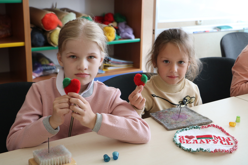Ловко орудуя специальными иглами, юные участники объединения блестяще справились с заданием. Помогли им в этом сотрудницы музея Елена Цыркунова и Ольга Красницкая. Ребята получили настоящее удовольствие от творческой работы и хороший опыт для дальнейших занятий. Яркие, согретые теплом детских рук сердца — для нашей любимой Беларуси.
