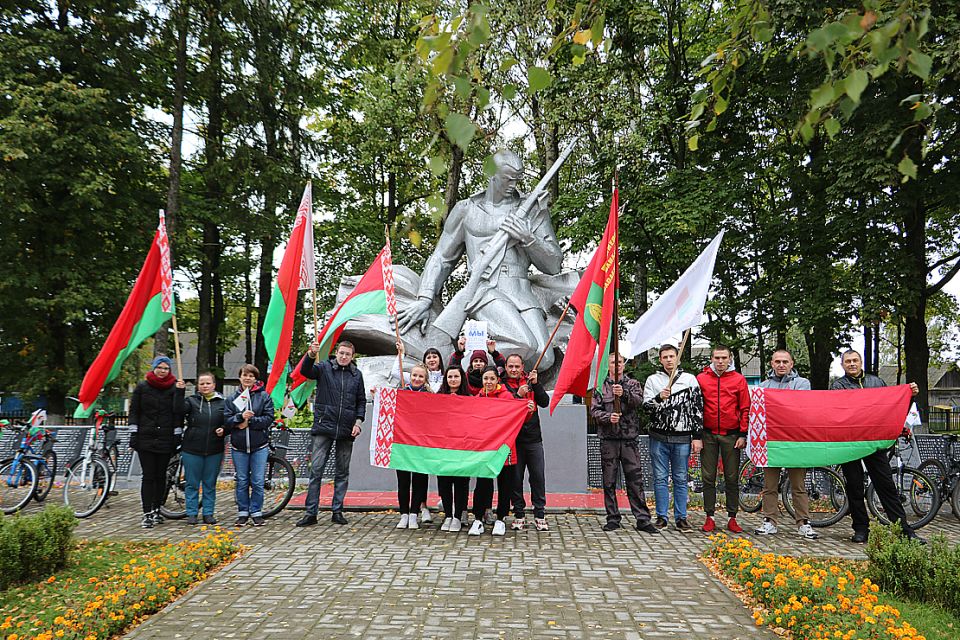 Старт велосипедистамв был дан с центральной площади Дрибина. Участники велопробега с символикой Беларуси проехали по улицам райцентра. Посетили место, святое для каждого жителя Дрибинщины, — братскую могилу. Здесь участники мероприятия почтили память павших героев в Великой Отечественной войне минутой молчания.