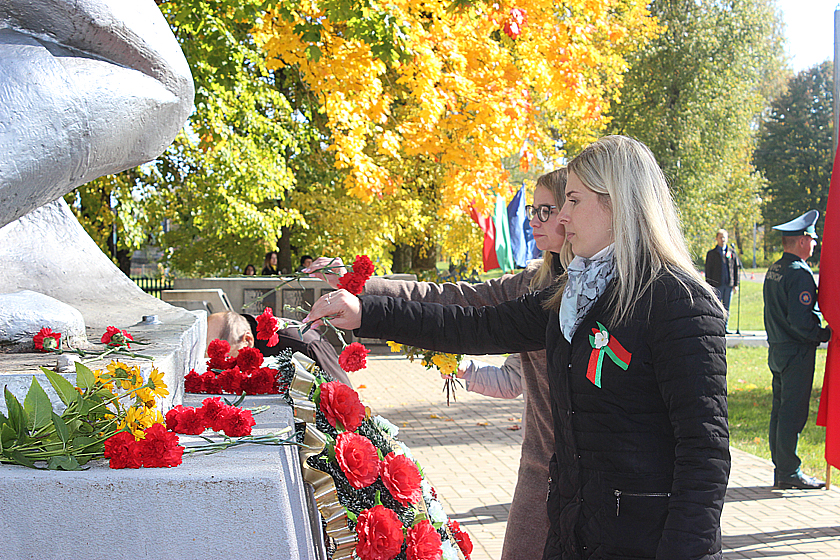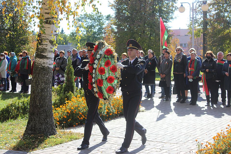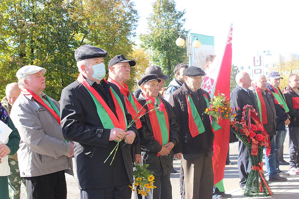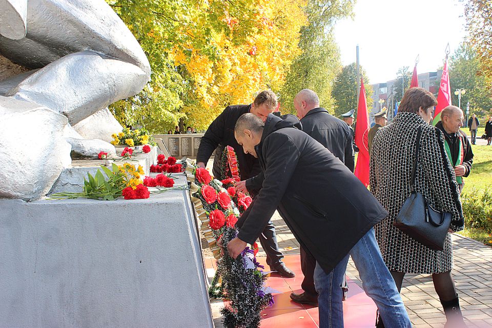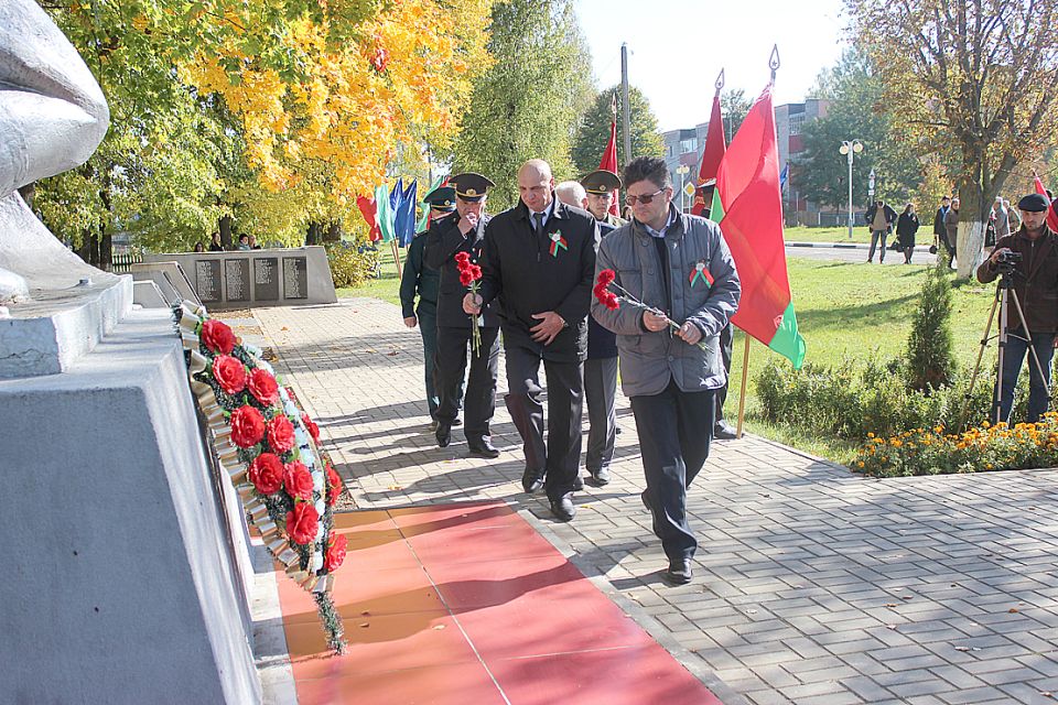 По случаю праздничной даты вчера в Дрибине состоялся торжественный митинг. По традиции мероприятие началось с возложения венков и цветов на Аллее Славы. Тем временем у братской могилы, ставшей уже знаковым местом для жителей нашего района, собрались представители общественных объединений и трудовых коллективов. С приветственным словом ко всем собравшимся обратились первый заместитель председателя — начальник управления по сельскому хозяйству и продовольствию райисполкома Сергей Запрудский и председатель Дрибинского районного Совета ветеранов Виктор Гуща. Виктор Антонович вспомнил, как развивался и становился наш район, сколько испытаний довелось ему пережить, подчеркнув, что сегодня нам, жителям дрибинской земли, есть чем по праву гордиться: маленькая, но уютная Дрибинщина занимает достойное место на карте страны.