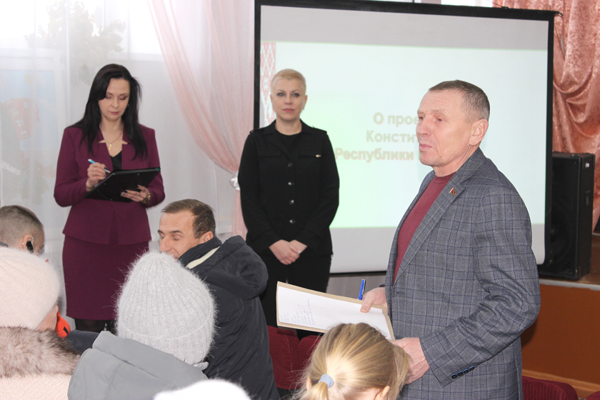 — Обнародован проект Конституции Республики Беларусь для всенародного обсуждения. Теперь каждый гражданин нашей страны может не только ознакомиться с текстом проекта, но и внести свои предложения по его совершенствованию. А современные политические и социально-экономические реалии требуют этого.