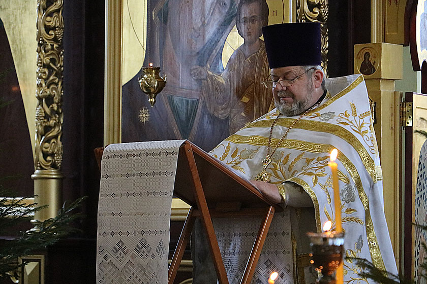 На фото: литургию в Спасо-Преображенском храме г.п. Дрибин проводит настоятель отец Сергий Сень.