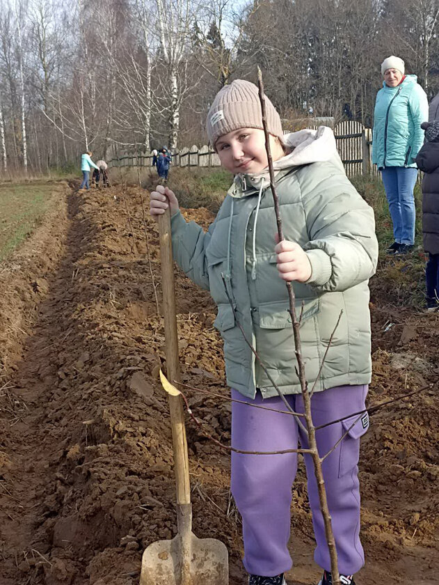 Под руководством взрослых учащиеся все сделали грамотно: выкопали лунки, добавили в них перегной, распределили у саженцев корни… Деревца полили.