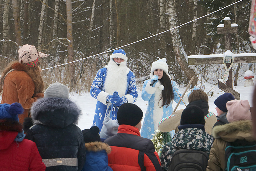 Владения сказочного старика и его внучки Снегурочки как обычно расположились в одном из самых живописных зимних уголков Дрибинщины — на заснеженной поляне у «Гремячей криницы» на территории Рясненского лесничества. Именно здесь 27 и 28 декабря Дед Мороз назначил встречу с жителями нашего района — со всеми, кто хотел бы окунуться в добрую сказку из детства.