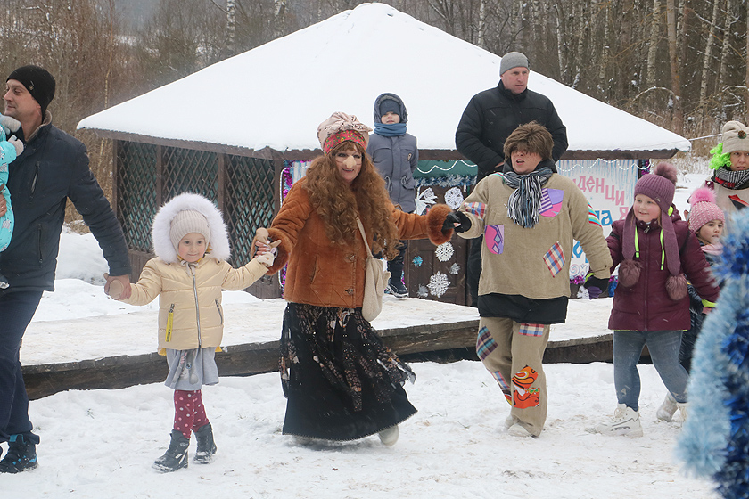 В праздничной программе — сказочное представление возле новогодней елки, игры и конкурсы для детей на свежем воздухе с участием сказочных героев — Бабы Яги, Лесовичка, Снегурочки и др., хороводы на волшебной поляне.