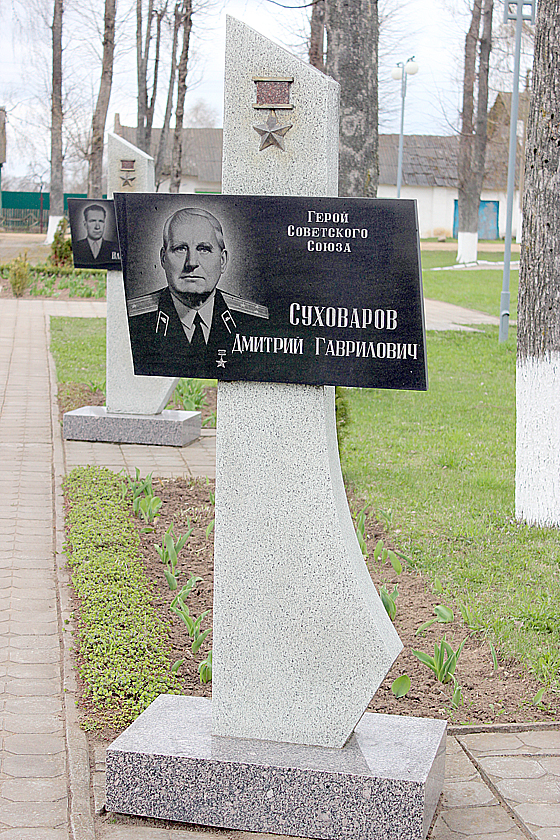 На Аллее славы в райцентре на одной из стел значится имя Героя Советского Союза Дмитрия Григорьевича Суховарова. Этого звания наш земляк был удостоен за бои под Киевом осенью 1943 года. 5 ноября танкисты подполковника Суховарова, прорвав оборону противника, перерезали 5 дорог, выходящих из города, что способствовало удачному наступлению советских войск. И к утру 6 ноября столица Украины была освобождена. Командира 53-го танкового полка представили к Герою за — цитируем наградной лист — «исключительную храбрость», «практическое идеальное управление и решительные действия».