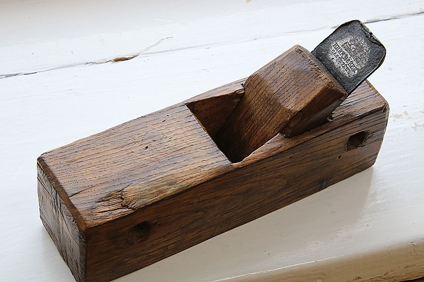 Взгляните на фото. Перед вами самодельный рубанок. Деревенский умелец вырезал колодку из дубового бруса. Работа выглядит грубовато. Но обратите внимание на текстуру дерева. Вещь красива — своей теплотой и естественностью. И трещина на боку впечатление не портит.