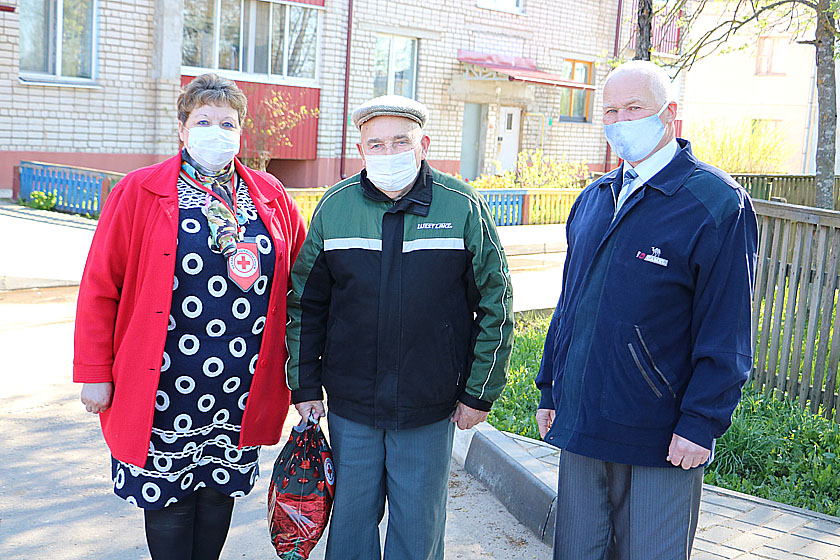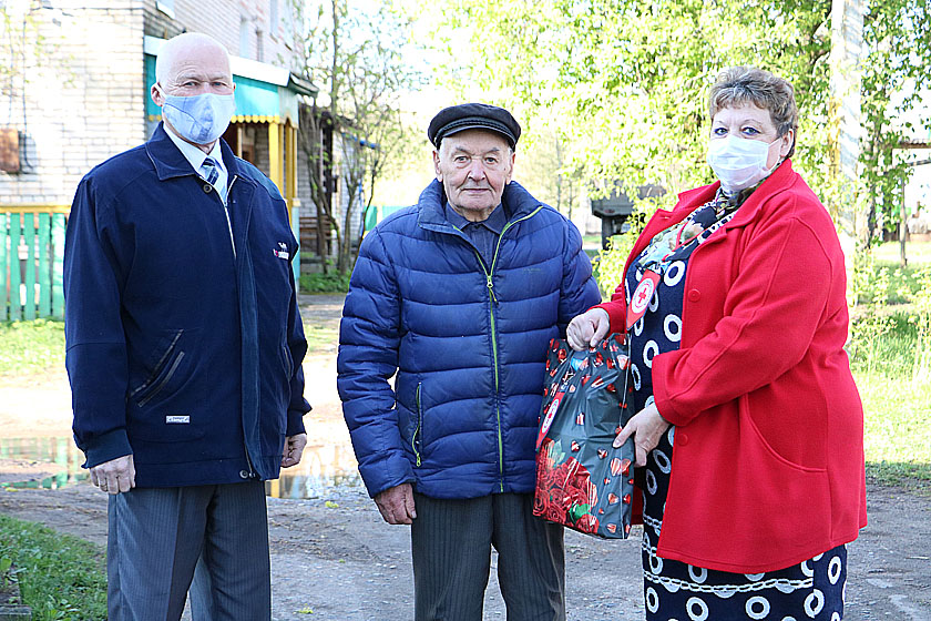 организации Белорусского Общества Красного Креста Светлана Давыденок и председатель районного Совета ветеранов Виктор Гуща в рамках волонтерской мини-инициативы поздравили с праздником