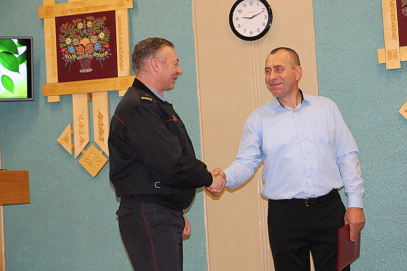 Начальник отдела внутренних дел вручил Николаю Шведову Приветственный адрес и пенсионное удостоверение. А председатель первичной ветеранской организации РОВД Вадим Жур – членский билет Белорусской организации ветеранов органов внутренних дел и внутренних войск Республики Беларусь.