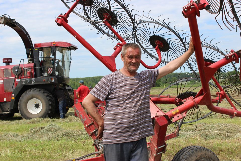 — Важный процесс – заготовку кормов, начали с 1 июня, когда кормовые травы достигли оптимальной фазы вегетации. Основные силы сейчас сосредоточены на кормозаготовке. Численность поголовья скота в хозяйстве с каждым годом возрастает, поэтому объемы заготовки кормов также увеличиваются. В нынешнем году нам предстоит заготовить на зимне-стойловый период 5000 тонн сенажа из провяленной зеленой массы, 350 тонн сена из луговых трав улучшенных сенокосов. Травы первого укоса – самые полновесные по урожайности и наиболее ценные по питательным веществам. Первый укос планируем произвести быстро, заложить качественные корма, для этого у нас достаточно техники и людских ресурсов. Все работы по растениеводству и заготовке кормов, в первую очередь, нацелены на развитие животноводства. Для того чтобы не только вырастить, но и убрать, и сохранить качественный продукт, зеленую массу заготавливаем строго по технологии, которая направлена на сохранение в сенаже всех питательных веществ. Провяленная масса в сенажные траншеи трамбуется круглосуточно. Важный момент – температура массы, влажность, это состояние зеленой массы мы проверяем специальным прибором, по несколько раз в день. Что касается сена, то здесь скошенная трава должна быть мягкая и ароматная – именно таким должно быть качественное сено. После того, как траву скосят, она подсыхает, затем ее переворачивают. Следующий этап – сгребают в валки, и лишь после этого специальная машина прессует и формирует тюки.