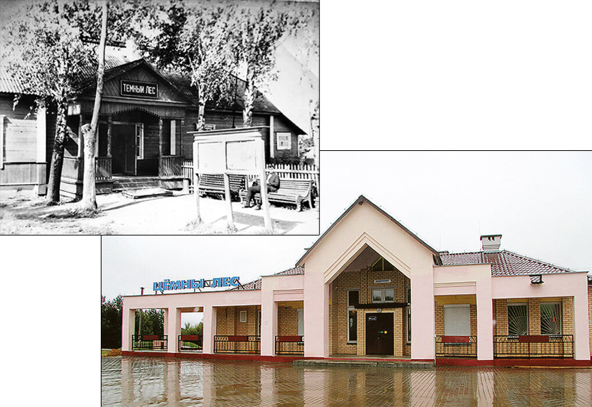 О станции Темный Лес: как она выглядела в 60-70-е годы прошлого столетия? Прежде здание вокзала было деревянным. Под одной крышей находились билетная и багажная кассы, комната дежурного, зал ожидания и жилое помещение, предназначавшееся для железнодорожников. Рядом располагался сад. В нем росли яблони и кусты черной смородины, которые местные ребятишки обирали по мере созревания ягод.