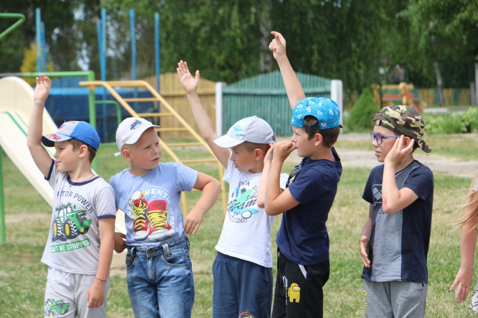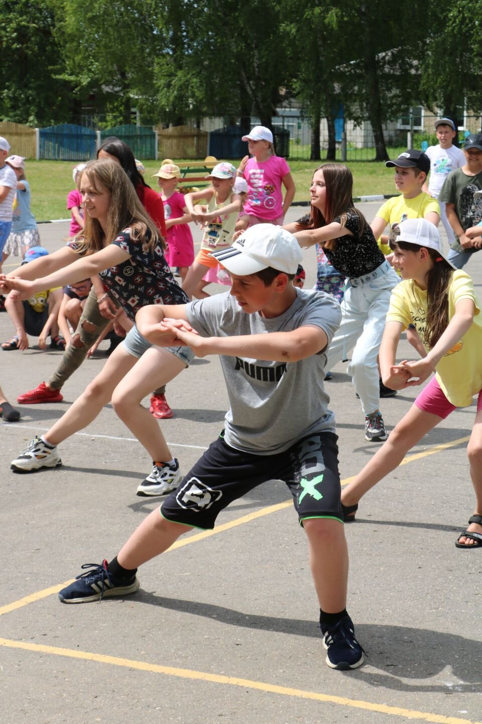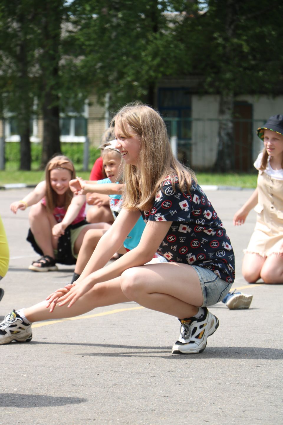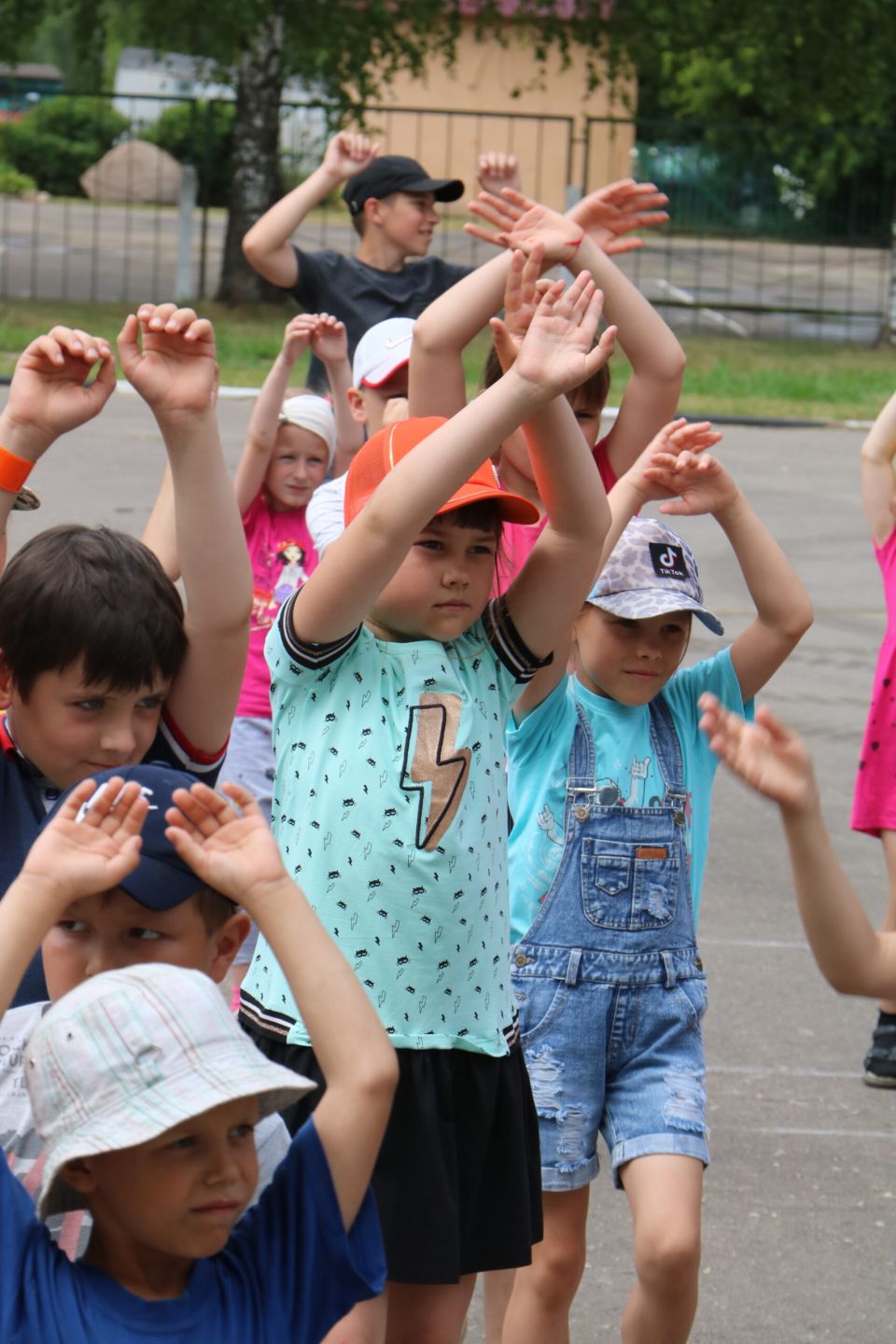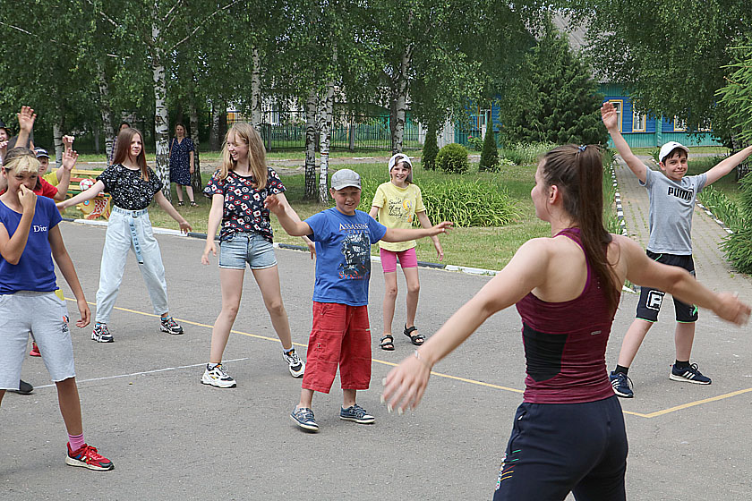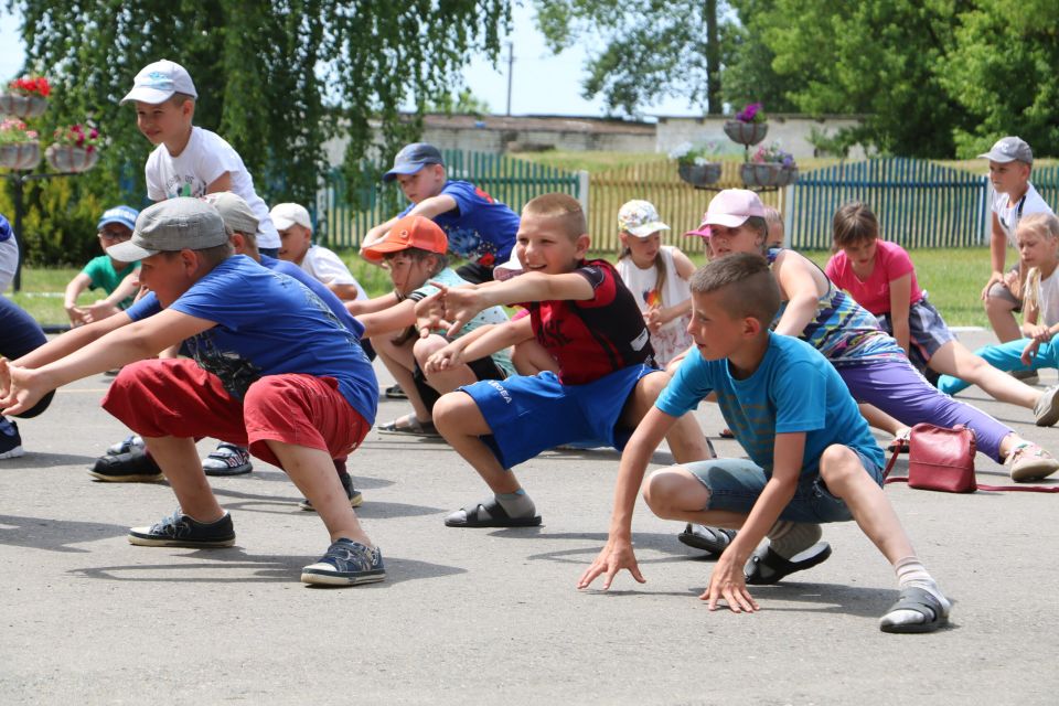 На снимках: работники Центра физкультурно-оздоровительной работы проводят зарядку и эстафету с ребятами из летнего лагеря, действующего на базе Дрибинской СШ.