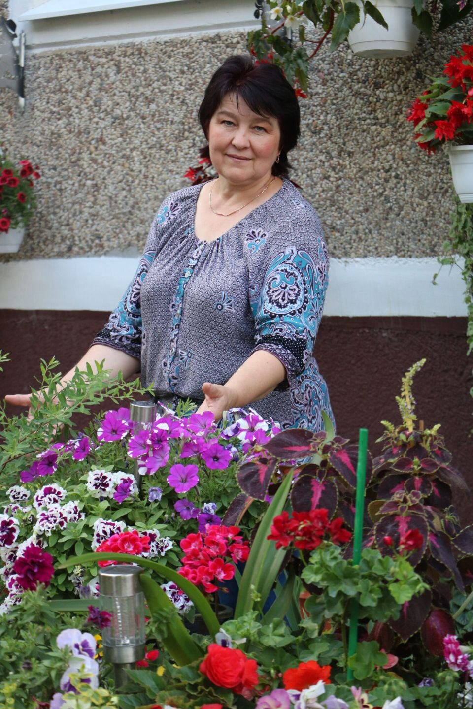 Одним словом, цветы здесь, поочередно сменяя друг друга, радуют глаз с весны до осени. Казалось бы, как на относительно небольшом пятачке земли помещается столько растений? Просто надо уметь создать композицию, зная, что будет хорошо друг с другом сочетаться и друг друга дополнять, отличный вариант — всевозможные горшки и корзинки, подвесные кашпо, декоративные подставки. Все это Валентина Леонидовна приобретала или смастерила-приспособила, проявив немного творческой фантазии, сама.