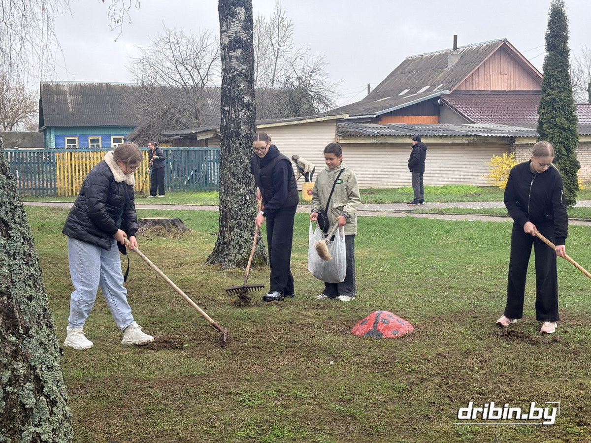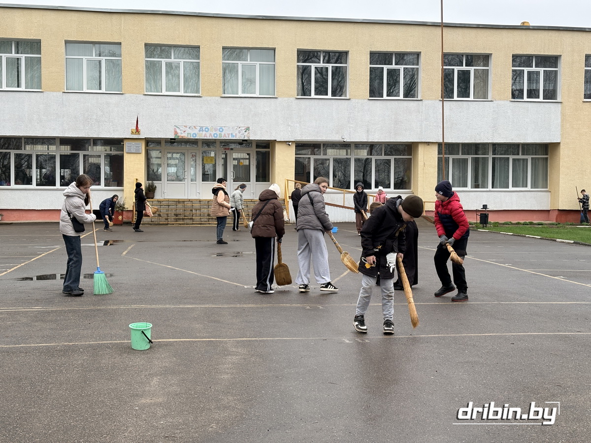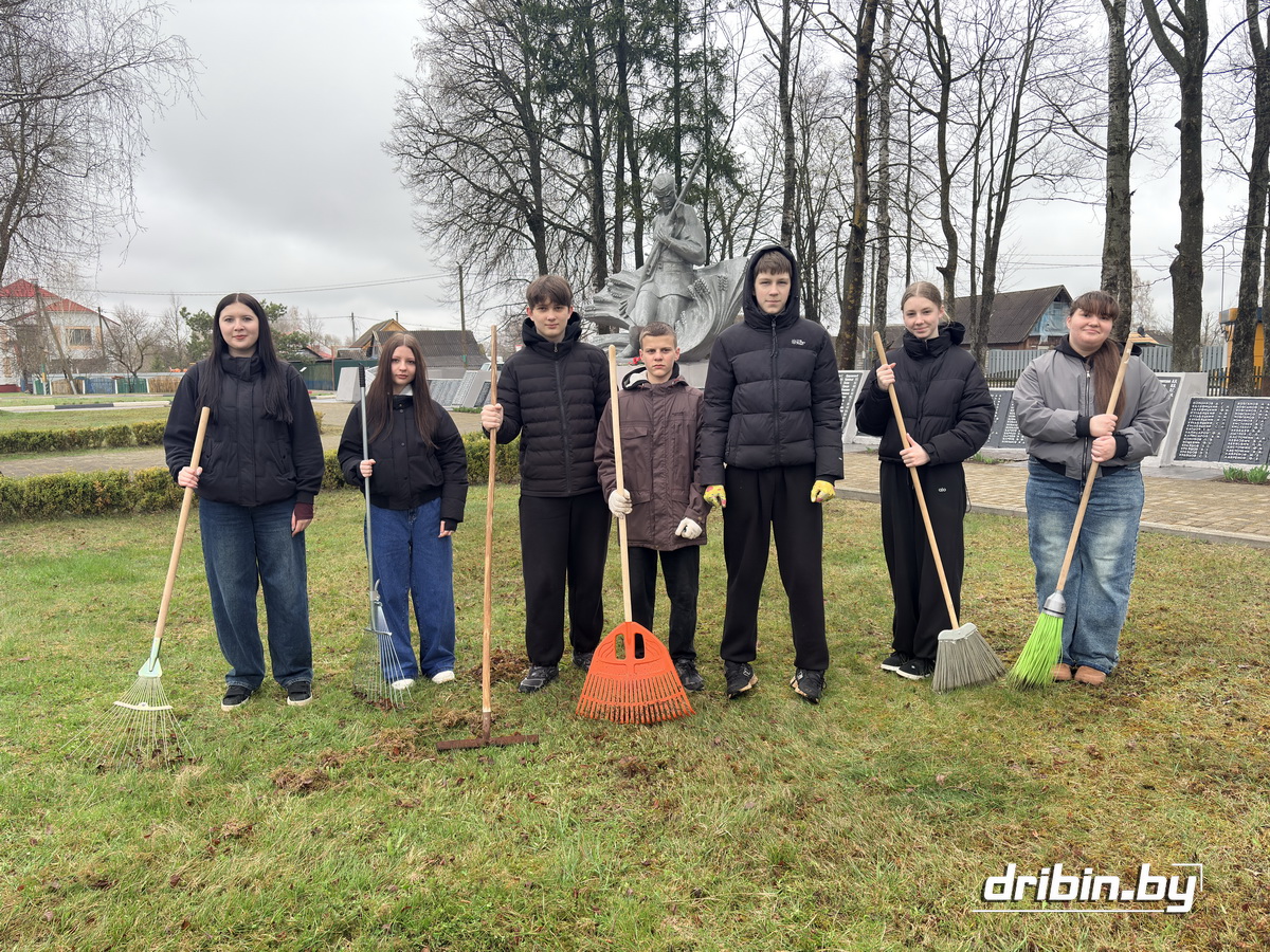 Дружным коллективом вышли потрудиться педагоги и учащиеся Дрибинской средней школы. На территории учреждения было шумно и весело, но у каждого свой участок работы: участники субботника сгребали прошлогоднюю листву, подметали, убирали мусор, пропалывали клумбы… Трудовой десант из старшеклассников также наводил порядок у Братской могилы в Дрибине.