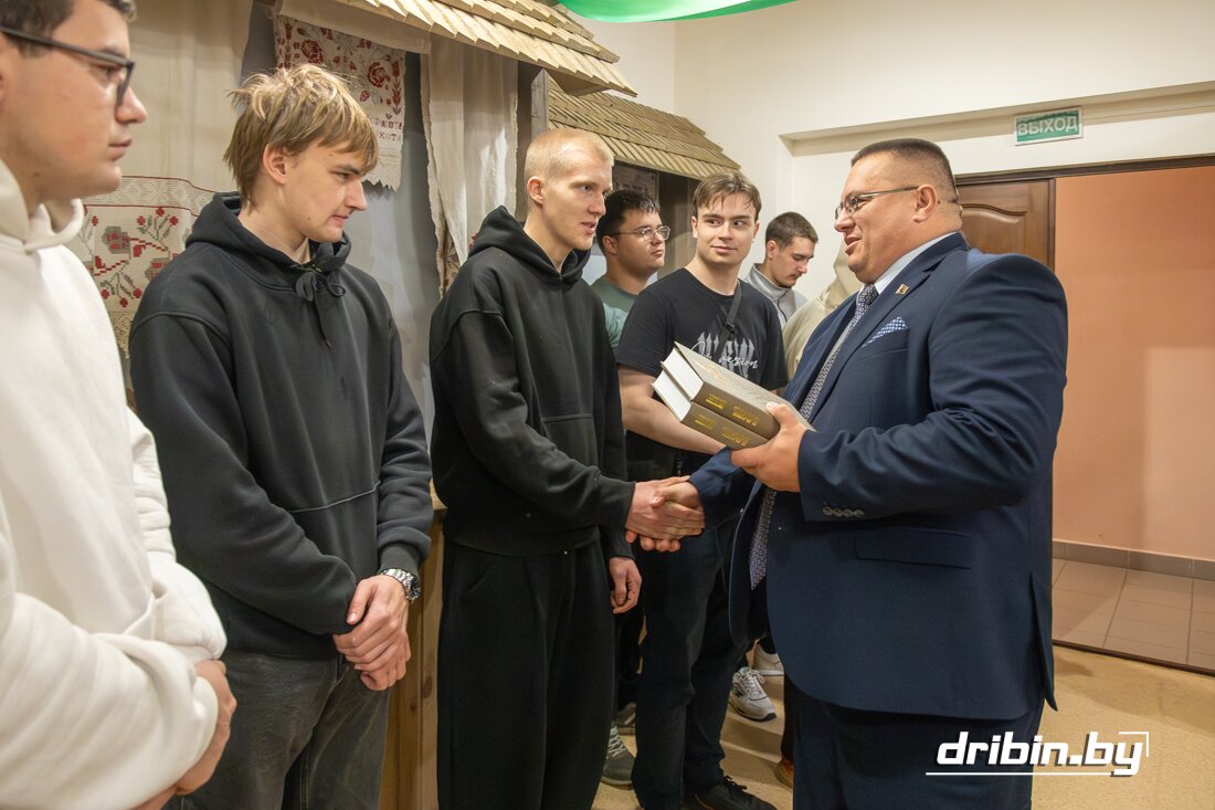 На память об этом значимом дне молодым людям председатель Дрибинского районного исполнительного комитета вручил символический подарок — книги «Памяць», где отражена летопись Дрибинской земли, начиная от средневековья до нового времени.  Почетный гражданин Дрибинского района, председатель районного Совета ветеранов Виктор Гуща в связи с этим дал призывникам наказ не забывать свой район, помнить малую родину и быть достойными славных дел наших выдающихся земляков.