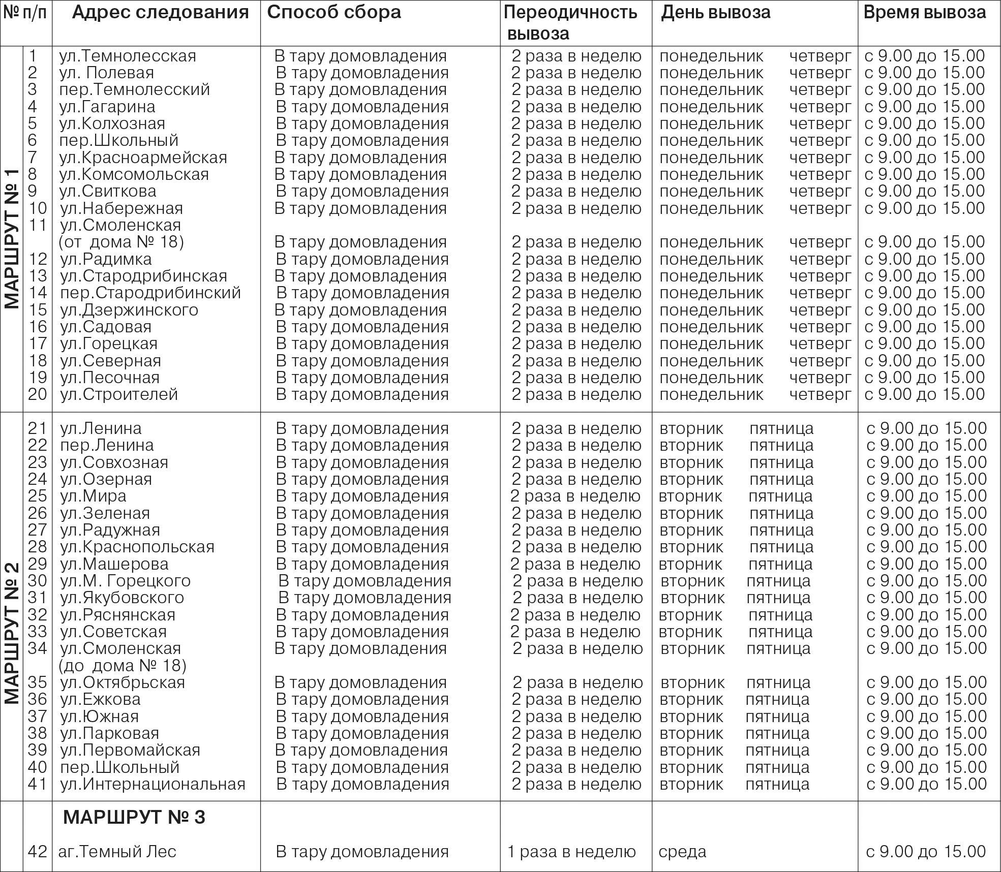 Дрибинское УКП «Жилкомхоз» информирует, что с 22 декабря 2025 года (понедельник) вывоз твердых коммунальных отходов (мусора) будет осуществляться по графику: понедельник, вторник, четверг, пятница – г.п.Дрибин; среда – аг.Темный Лес.