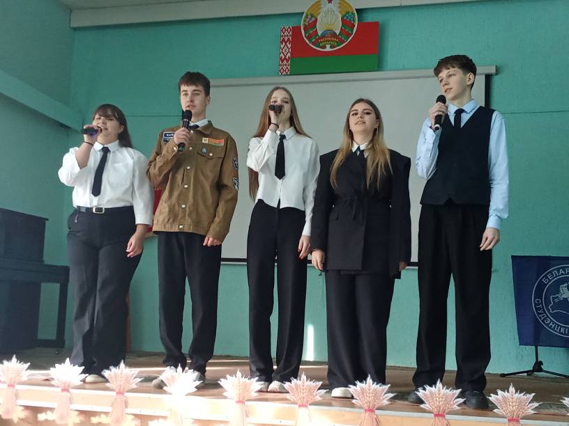Литературная композиция «Беларусь моя синеокая», проведенная педагогом-организатором Нелли Шутковой, сплотила всех членов молодежных организаций, членов военно-патриотического клуба «Патриот», участников студенческих отрядов и учащихся волонтерского движения Красного Креста.