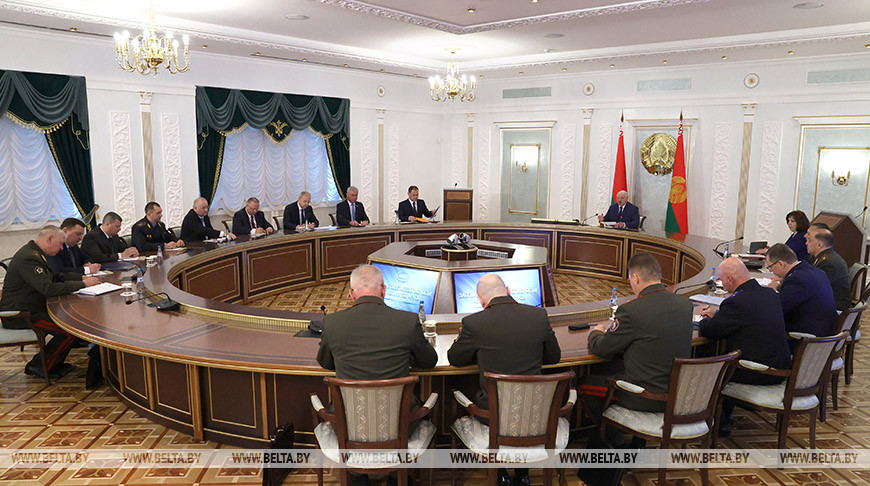 «В том числе в вопросах защиты независимости, территориальной целостности, суверенитета и конституционного строя Беларуси, поддержания гражданского мира и согласия, противодействия экстремизму и терроризму — самый широкий круг проблем», — сказал Александр Лукашенко.