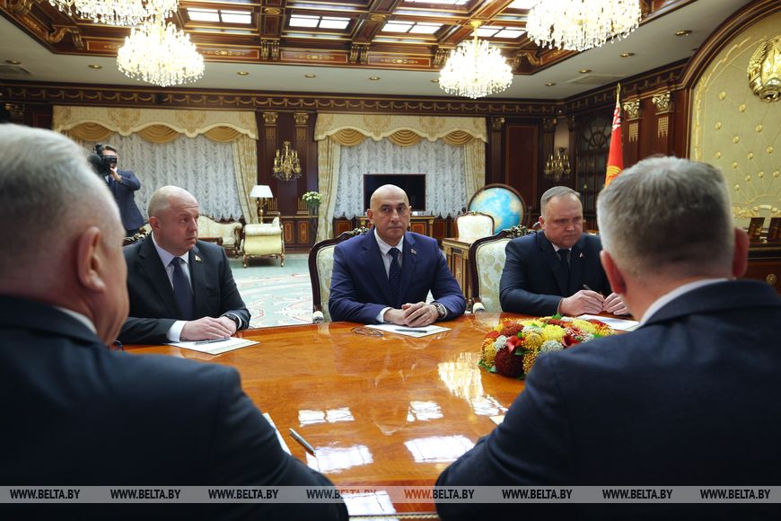 Глава государства также принял с докладом председателя Совета Республики Наталью Кочанову. Речь шла о законотворчестве, совершенствовании работы с гражданами и по линии местных советов.