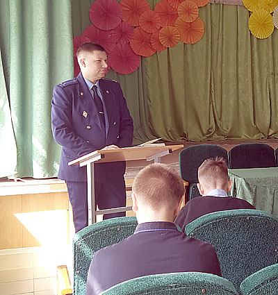 Артур Сергеевич просто и понятно, на доступных примерах, предостерег парней от всякого рода нарушений законодательства: хулиганства, драк, оскорбления достоинства человека, в том числе и в интернете, от порчи и присвоения собственности, от нарушения антиалкогольного законодательства, употребления и распространения наркотиков, от краж, присвоения денег с найденной карточки…
