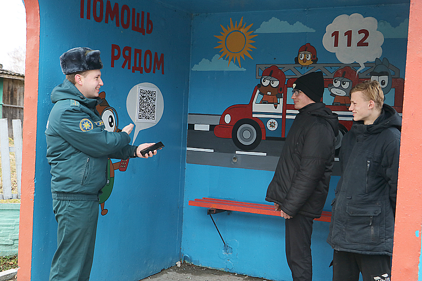 Наглядный пример — автобусная остановка в Рясно, расположенная на дороге, ведущей из Могилева в Мстиславль. Ожидая прибытия автобуса, родители с детьми проведут время с пользой. На стене размещен QR-код, воспользовавшись которым, можно узнать о мобильном приложении «МЧС Беларуси: Помощь рядом», и установить его к себе на телефон. С помощью приложения несложно будет выучить алгоритм действий в случае возникновения пожара, повторить правила безопасного поведения в доме, лесу, на улице и вблизи водоемов, номера вызова спасателей.